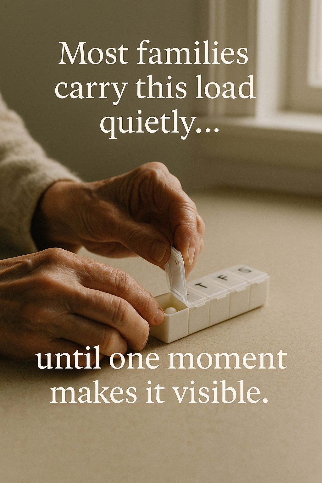 Medication is a small object with a large emotional footprint. Families manage the routine and everything it represents: safety, stability, and the desire for their parent to continue thriving at home.